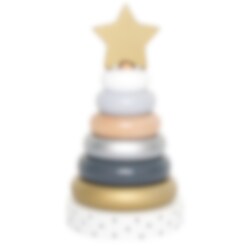 Stableleke fra Jabadabado i fine farger og en stjerne på toppen. Denne klassiske leken fungerer perfekt som en dåpsgave da den er morsom å leke med samtidig som at den utvikler barnets finmotorikk. Ringene er enkle å gripe tak om og er laget av tre. Stableleken er ca. 18 cm høy.