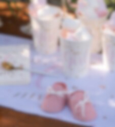 4 stk. lyserosa søte babysko som kan brukes som pynt, eller en liten boks til å legge godteri i og overraske gjestene dine i dåpen eller på babyshoweren. De er laget av bomull og er ca. 8,5 x 4,5 x 3 cm store.