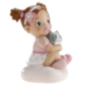 Kakedekorasjon - Baby i rosa med kattunge 9 cm