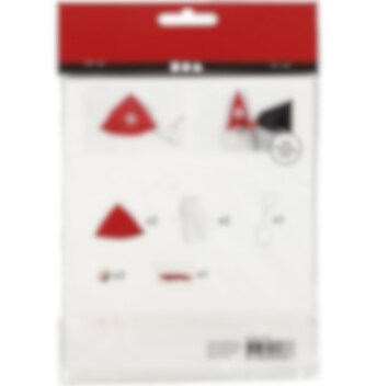 Innhold: Utskåret rød fløyel, skjegg, treperler og tråd. Beskrivelse følger med. Størrelsen refererer til målene på det ferdige produktet.