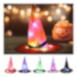 Heksehatt med LED-belysning er tilgjengelig i 5 forskjellige farger! Rosa, lilla, oransje, svart og grønn. På grunn av sine vakre og stemningsfulle LED-lys, er ikke bare hatten perfekt å bruke som pynt til Halloween, men den egner seg også som kostyme da den er i en barnestørrelse. Hatten er ca. 34 x 37 cm og drives av 2 stk. CR2032-batterier som er inkludert. Laget av 100% polyester.