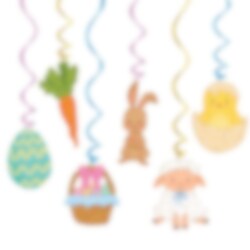 Skap en leken og festlig påskestemning med disse fine hengende dekorasjonene. Settet inneholder seks forskjellige motiver, blant annet en kanin, et påskeegg og en søt kylling, som svever fint i luften takket være de fargerike spiralene.