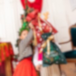 Gi dine julegaver en ekstra festlig touch med denne røde gaveposen, dekorert med vakre julemotiver i gull og hvitt. Posen er 45 x 30 cm og er laget av polyester.
