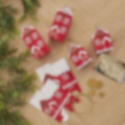 En utrolig fin DIY adventskalender med søte røde hus med hvite detaljer, som gir en ekte julestemning. Monter husene selv og nyt det lille juleverkstedet. Deretter kan du legge små gaver i, eventuelt andre godsaker. Plasser de gjerne slik at de er synlige, da de også er koselig som juledekorasjon. 12 stk. hus er 15 cm høye og den andre 12 er 11 cm høye. Hver pakke inneholder: 24 stk. hus med tilhørende gullgarn 24 stk., i tillegg til klistremerker med tallene 1-24.
