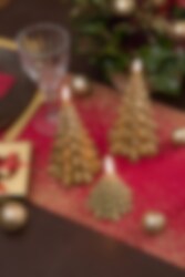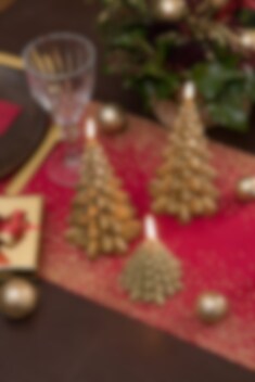 Elegant stearinlys formet som et juletre i gullfarge. Med sin høyde på 8 cm er dette lyset den perfekte dekorasjonen for å skape en koselig og festlig atmosfære til jul. Kombiner med andre farger og størrelser og få til en fantastisk liten skinnende juletre skog.
