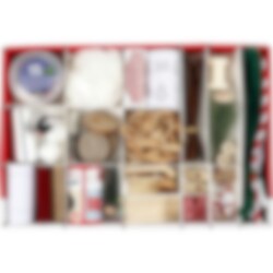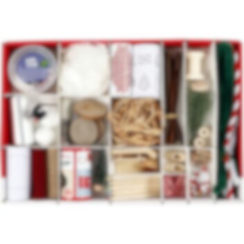Komplett eske som inneholder 24 kreative og morsomme ideer til aktiviteter som nissen kan finne foran døren sin i desember, i tillegg til innhold for å iscenesette aktivitetene. Det følger med en bruksanvisning som gjør det enkelt å komme i gang. På baksiden av esken kan du finne 24 bilder, som alle viser en morsom aktivitet nissen kan gjøre hver fra fra 1. til 24. desember. Nissen kan for eksempel sette opp juledekorasjoner, hente et juletre, male i en bok, bygge en snømann, spille et memoryspill, m.m. Aktivitetene iscenesettes av de voksne, slik at barna blir overrasket over hva nissen har gjort i løpet av natten. Noen av aktivitetene kan barna selv leke videre med. Du kan velge å beholde rekkefølgen på aktivitetene eller bestemme selv, så det nissen gjør går sammen med deres egne juletradisjoner - f.eks. bake på samme dag som familien din. Sett opp aktivitetene foran nissedøren eller nissehuset, alt etter hvor nissen bor og hvilke tradisjoner dere allerede har. Vær oppmerksom på at nissedøren ikke følger med i denne esken, men kan kjøpes separat. Med dette dekorasjonstilbehøret, får du en enkel løsning som du kan kombinere med egen kreativitet og sammen kan dere telle ned til jul. Esken inneholder: Silk Clay, metallpapir, isoporballer, filt, stoff av jute, teppe, julestoff, juletre, tresneller, slede, tresko, skjærebrett, kjevle, bolle, bomullsgarn, perler, pomponger, klesklyper, tosidig tape, lim, trepinner, piperenser, snøre, fargeblyant.