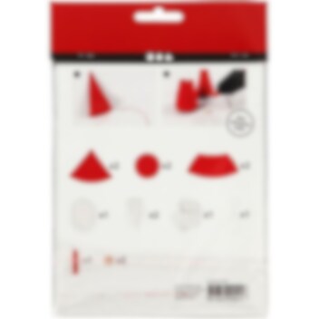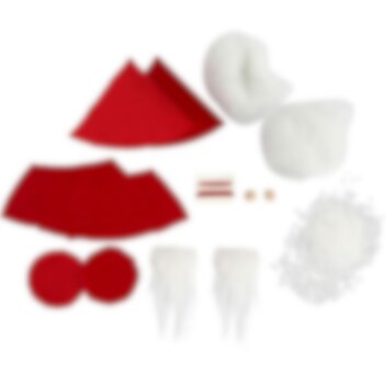 Innhold: rød velur, skjegg, treperler, polyesterfyll, plastkuler og ståltråd. Beskrivelse inkludert. Størrelsen angir dimensjonene til det ferdige produktet.