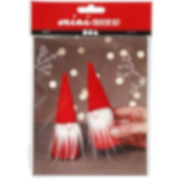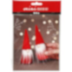 DIY Hobbysett til 2 stk. søte små sydde nisser med langt skjekk og kropp og hette i velur. Nissene er ca 12 cm høye.