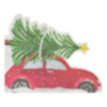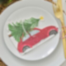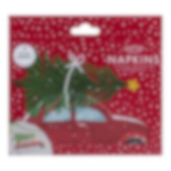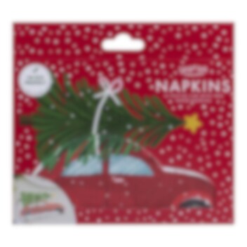 16 stk. fine juleservietter formet som en rød bil med et juletre på taket. Serviettene er ca. 17 x 15,5 cm store.