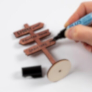 Hvor i all verden er du på vei? Denne lille skiltet av tre kan guide deg til både Nordpolen og Mexico. Monter den sammen med lim så er den klar til bruk - men du kan også velge å dekorere den. Du kan alltid fargelegge skiltet med vår hobbyfarge Plus Color som har god opasitet. Men husk at hvis du vil dekorere skiltet med en tynn ugjennomsiktig tusjpenn, må du først male det slik at fargen ikke renner ut i treverket.