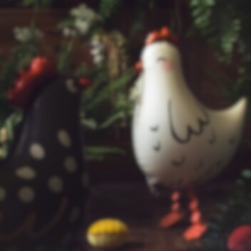Vakker folieballong som forestiller en hvit høne til å pynte med til påske. Ballongen er 48 x 60 cm stor og kan blåses opp med luft eller helium.