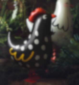 Folieballong som forestiller en svart høne med fargerike detaljer. Ballongen er 48 x 60 cm oppblåst og kan blåses opp med luft eller helium.