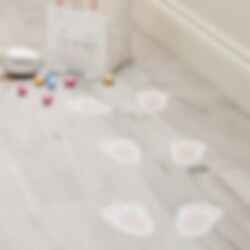 10 stk. klistremerker som forestiller søte kaninføtter som kan brukes til barnas eggjakt påskemorgen. Klistremerkene er 12 cm høye og 8 cm brede.