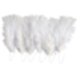 Påskefjær i hvit farge som sitter i små bunter 3 stk. som holdes sammen med en ståltråd. Fjærene er ca 11 til 17 cm høye og er laget av dun.