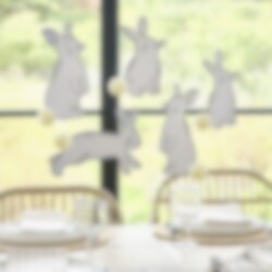 Dekorer til påske med disse morsomme hengende påskeharene som er perfekte for å spre glede i rommet og for å henges opp over påskebordet ditt. Alle påskeharer har en kremhvit vakker farge og morsomme haler av honeycomb.