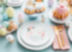 20 stk. servietter formet som en veldig søt kanin med en blomst på den ene siden av hodet, med rosa og gullfolierede detaljer. Dekorativt å ha på bordet til påskefeiringen. Serviettene er 3-lags og er ca. 10 x 14,5 cm store utbrettet og ca. 24 x 29 cm store utbrettet.
