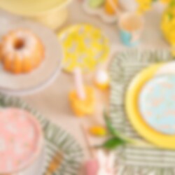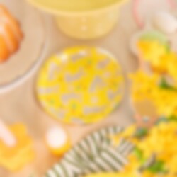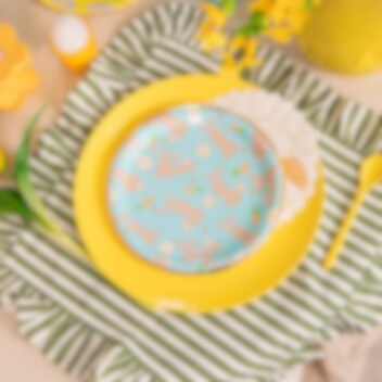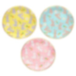 Dekk opp til et festlig påskemåltid med disse sjarmerende tallerkener dekorert med søte harer, gulrøtter og blomster. De tre forskjellige pastellfargene gir en leken og vårlig følelse, mens de glinsende gulldetaljene tilfører en elegant touch.