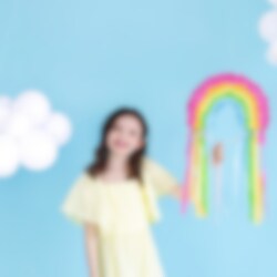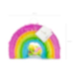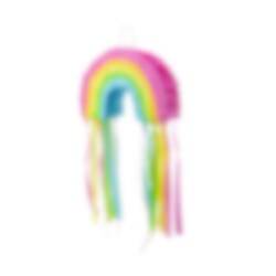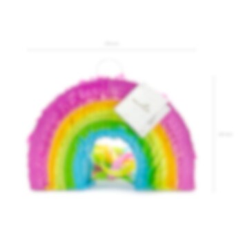 Kul pinata som forestiller en fargerik regnbue. En kul sak som du kan ha med på festen som en leke eller som en borddekorasjon. Fyll opp pinataen med godteri og leker og la barnene dra i snørene for å se hvem som tømmer den. Pinataen er ca. 30 x 20 x 10 cm stor og selges tom.
