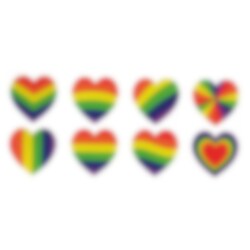 Hver rull inneholder 240 hjerteformede klistremerker i Pride-farger.