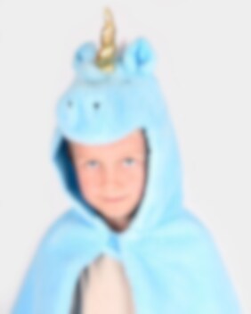 Føl deg som en magisk enhjørning med denne Blå Enhjørning Cape Kostyme for barn. Kappen er myk og koselig, laget av fluffy plysj og kommer med en lett polstret hette prydet med et gullhorn. Mann og hale i fuskepels samt borrelåslukning ved halsen fullfører din magiske look.