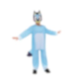 Forvandle deg til den elskede karakteren Bluey med dette sjarmerende kostymet! Denne kostymen inkluderer en one piece-drakt med Blueys karakteristiske utseende og en tilhørende hale, samt en myk filtmaske. Laget av 100 % polyester.