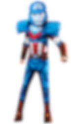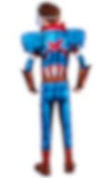Captain America Mech Strike Kostyme inkluderer skotrekk og hansker, stridsmaske av tekstil og en skulderrustning, som etterligner Captain America fra Avengers.