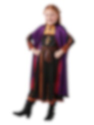 Frost 2 Anna kostyme inkluderer en flott kjole i svart og lille med fine trykk og en matchende cape. Kjolen finnes i tre størrelser som passer barn fra 3-4 år opp til 7-8 år. Lagd av 100 % Polyester. Dette er et offisielt lisensiert Disneyprodukt. Sko og parykk er ikke inkludert.
