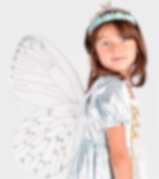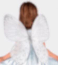 Lat som om du flyter bort med disse drømmende vingene. Vingene har fine detaljer i sølvglitter. Enkle å ta på og av med skulderstroppene i satengkledd strikk. Hver vinge er ca 55 x 22 cm.