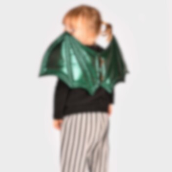 Grønne dragevinger som blir et kult tillegg til din kostyme for Halloween. Laget av 100 % polyester med en stålkant i toppen av vingene for ekstra stabilitet. Vingene har elastiske skulderstropper og en stilig grønnmetallic finish. Passer for barn fra ca 2 til 14 år.