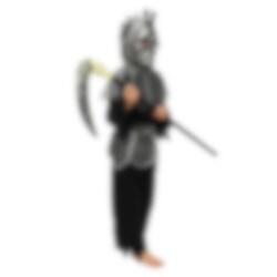 - Inneholder: En kappe med tilhørende hette, belte, samt ansiktsmaske av plast. (Ljå er ikke inkludert.)