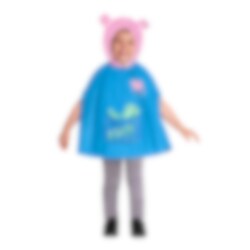 Georg Gris Poncho utkledningsdrakt inkluderer en poncho i fargene blå og rosa med tilhørende lomme og med motiv av Georg Gris foran, samt et lite tilbehør i form av en dinosaur. Ponchoen er laget av 100% polyester og fås i en størrelse som passer barn fra 4-6 år. Dette er et offisielt lisensiert produkt.