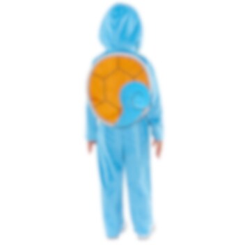 - Inneholder: Blå jumpsuit med tilhørende hette som forestiller Squirtles ansikt og et mykt skilpaddeskall på ryggen.