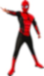 Spider-Man No Way Home Deluxe-Kostyme inkluderer en polstret jumpsuit med tilhørende skotrekk og en helmaske.