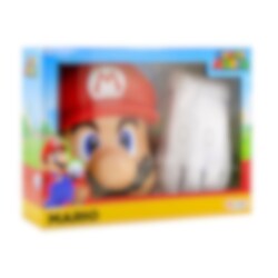Fint kostyme med Super Mario og et par hvite hansker. Produktet er laget av plast, skumplast, polyester og elastan. Anbefales til barn over 4 år.