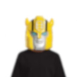 Bli Bumblebee på null tid! Den gule halvmasken med Bumblebees karakteristiske sølvansikt, blå øyne og gule pannekanter er en rask og enkel måte å forvandle seg til en ekte Autobot.