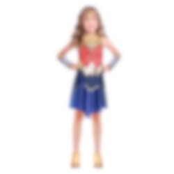 Wonder Woman Kostyme inkluderer en kjole med belte, et hodeplagg og et par hansker. Kostymet er laget av 100% polyester og finnes i en størrelse som passer til barn mellom 6 og 8 år. Dette er et offisielt lisensiert DC Comics-produkt.