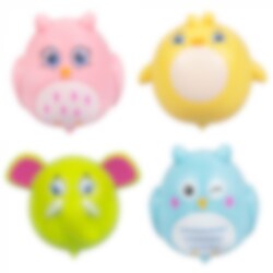 4 stk. morsomme pullback-leker i form av søte dyr i fine farger. Et morsomt tilskudd til godteposen eller pinataen til enhver fest. Lekene er ca. 4 cm i diameter og er laget av plast.