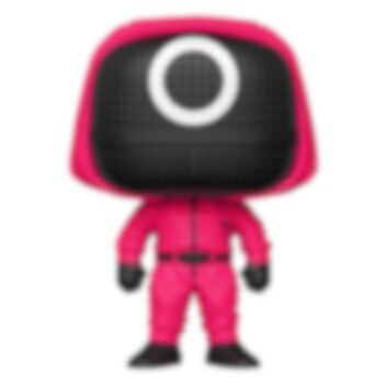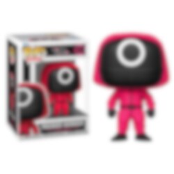 Stilig vinylfigur av en mystisk vakt i et rødt/rosa antrekk fra den populære Netflix TV-serien Squid Game. Morsomt å gi til de som samler på POP-figurer og som elsker Squid Game.