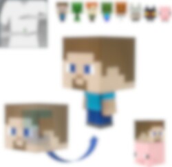 Små figurer med store hoder og små kropper som forestiller de morsomme karakterene fra Minecraft-spillene.