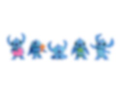 5 stk. samlefigurer som forestiller Stitch i forskjellige morsomme og uttrykksfulle poser fra filmen Lilo & Stitch. Hver figur er omtrent 5,5 cm høy og perfekt for både lek og samling. Passer barn fra 3 år og oppover.