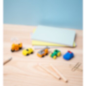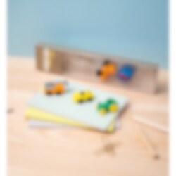 5 stk. viskelær som forestiller forskjellige kjøretøy i flotte farger. En morsom detalj å ha med i pennalet når man skal på skolen.