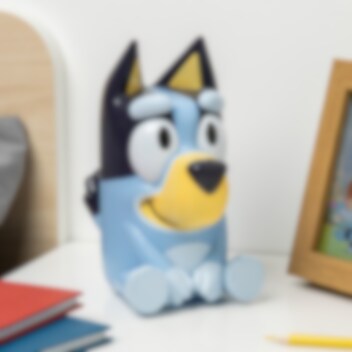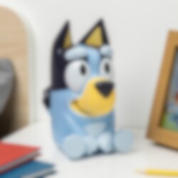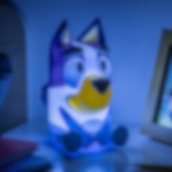Denne søte lampen forestiller Bluey sittende og sprer et mykt lys som skaper en trygg og koselig stemning. Lampen har også innebygde lydeffekter fra serien som aktiveres med et trykk, en morsom detalj for små fans.