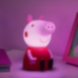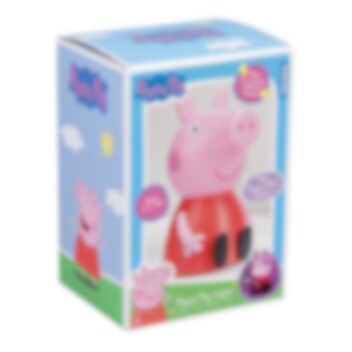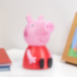 Gi barnerommet et koselig lys med denne supersøte lampen formet som Peppa Gris! Trykk på lampen for å høre kjente lyder fra den populære TV-serien – en morsom og interaktiv detalj som barn vil elske.