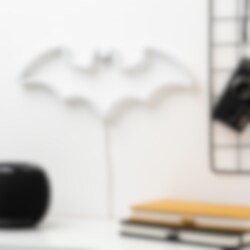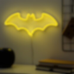 Stilig vegglampe formet som det ikoniske Batman-symbolet som lyser i sterkt neongult – en kul detalj for alle superheltfans og Gotham-entusiaster!