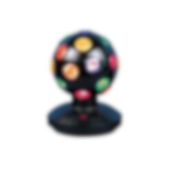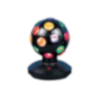 Få ekte diskofølelse på ditt eget rom. Svart discokule på fot med lys i mange flotte farger. 10 cm i diameter. Adapter følger med. Fra 3 år (krever ingen batterier).