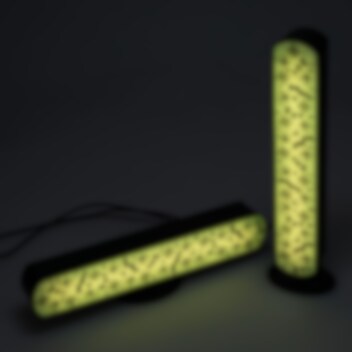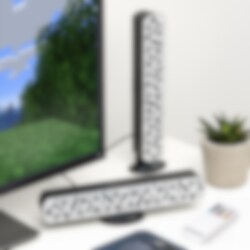 Kule lamper med motiver fra populære Minecraft, komplett med en tilhørende fjernkontroll. Perfekt pynt for alle Minecraft-fans! Lampene har tre forskjellige lysmoduser: musikkreaktiv, fargepulserende og en modus der du kan velge farge. De er 25 cm høye og drives av medfølgende USB-kabler, mens fjernkontrollen krever 2 AAA-batterier (ikke inkludert).