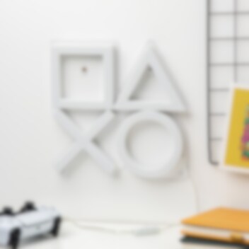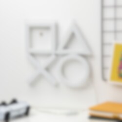 Stilig vegglampe med de ikoniske PlayStation-symbolene – trekant, sirkel, kryss og firkant – som lyser i sterke neonfarger. Lampen festes enkelt på veggen og blir en kul detalj i gaminghjørnet, tenåringsrommet eller spillrommet.