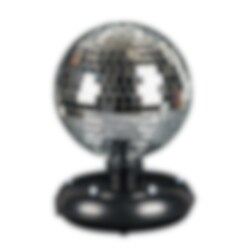 Skal det være disco, så la det være disco! Klassisk diskokule på fot, med 6 LED-lamper som lyser på speilkulen. 12v 6 watt adapter følger med.