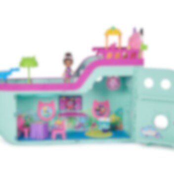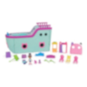Stig ombord på dette fantastiske "Cat-Tastic Cruise Ship" fra Gabby's Dollhouse! Dette fargerike skipet kommer med 18 forskjellige deler og tilbyr fargerike og skiftende lys som vil fortrylle barna.