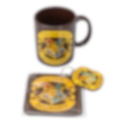Fräckt presentkit innehållande en porslinsmugg, ett glasunderlägg och en nyckelring med motiv av Hogwarts från Harry Potter serien. En kul present till den som älskar Harry Potter.